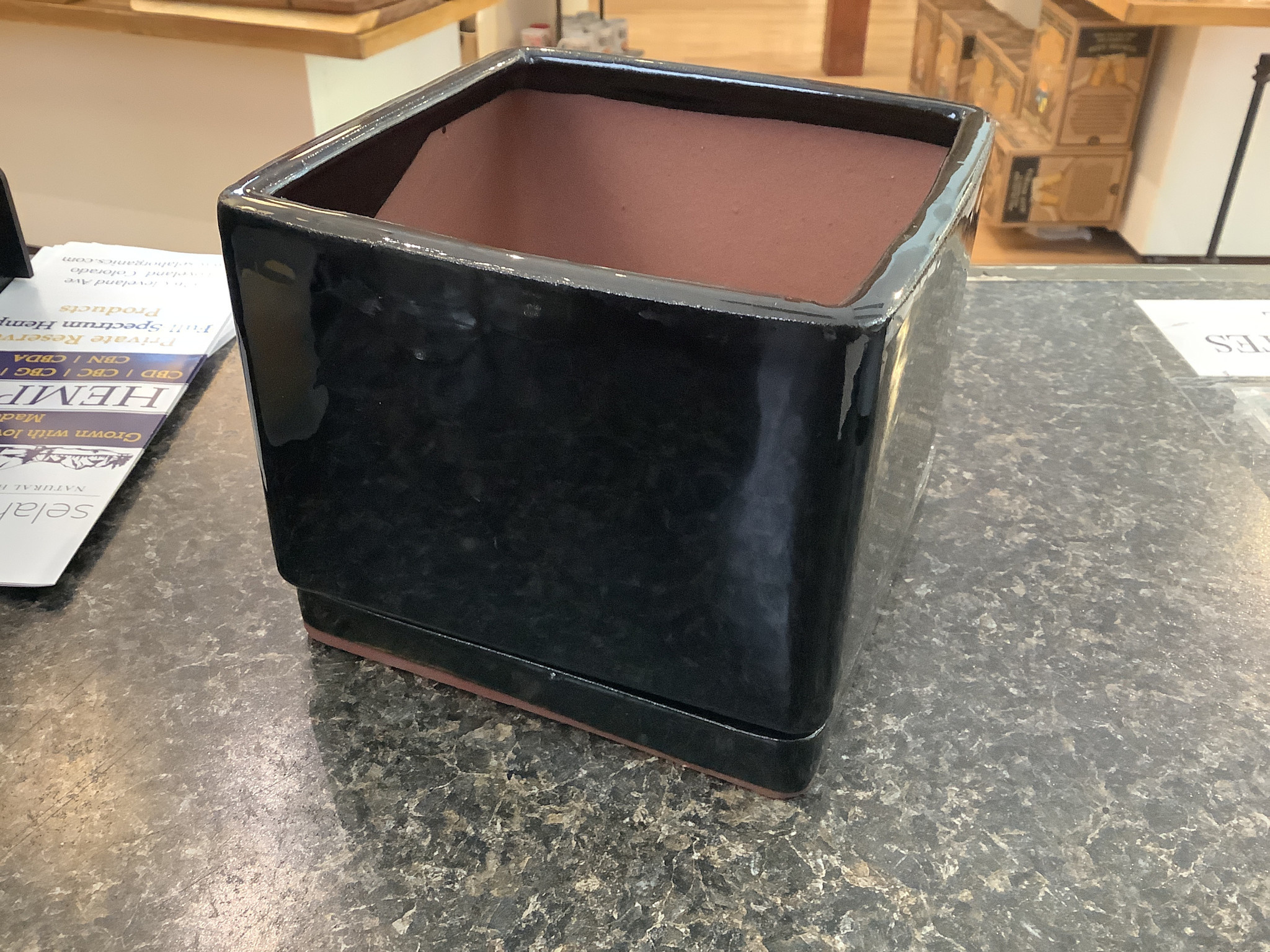 Review Square Planter - Black Glazed 6.5 x 4H