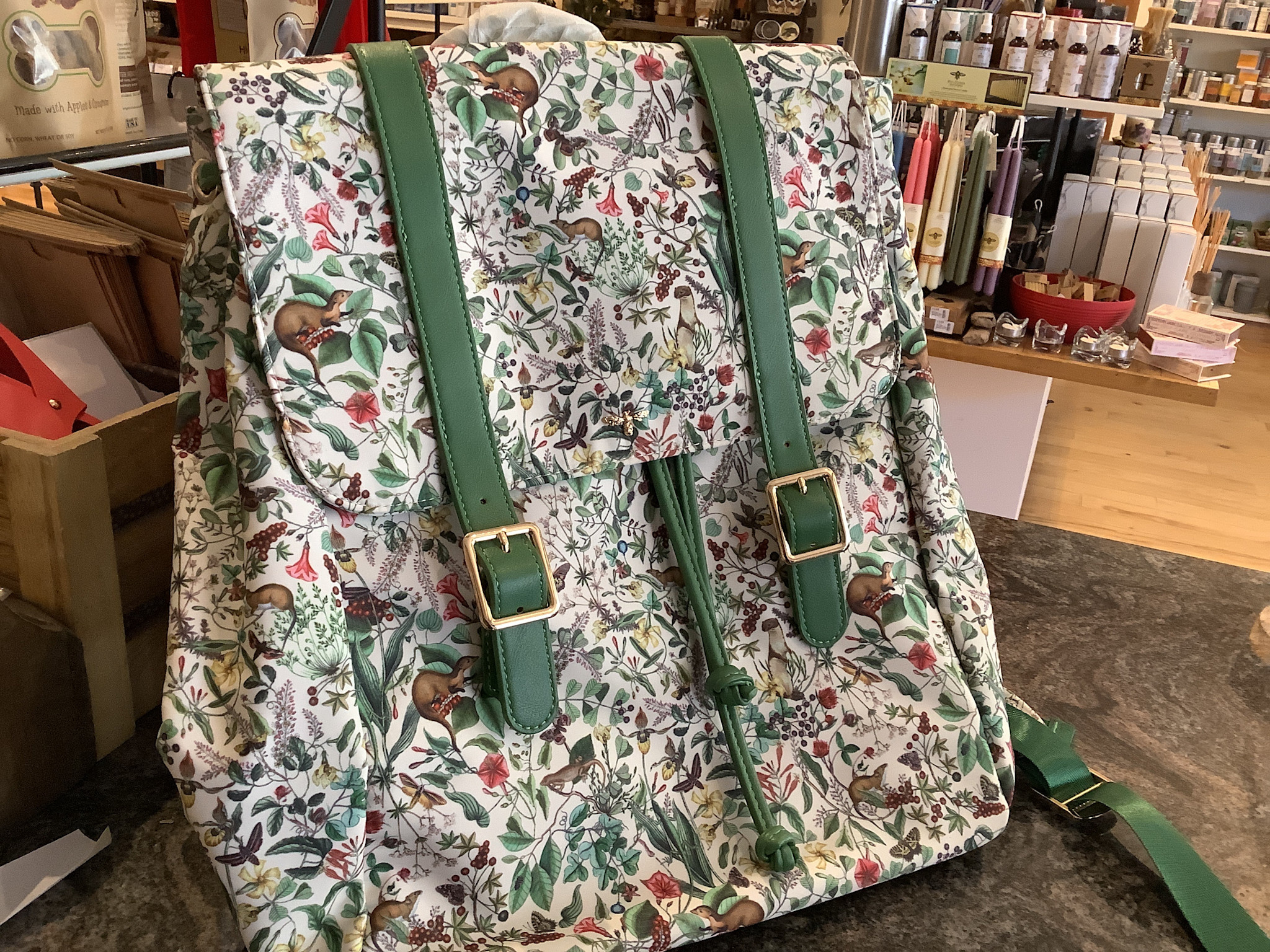 Review Garden Floral Backpack - Cream and Green