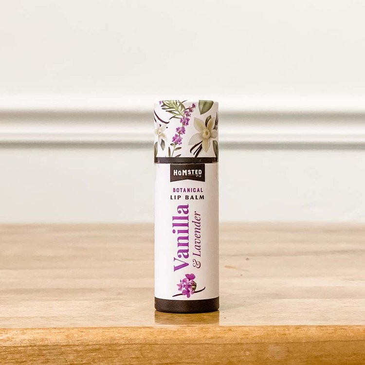 Vanilla & Lavender: olive oil*, jojoba oil*, beeswax, shea butter*, cocoa butter*, coconut oil*, lavender essential oil*, vitamin E, natural vanilla flavor.