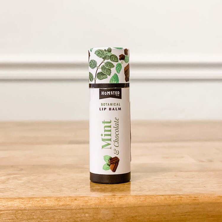 Mint & Chocolate: olive oil*, jojoba oil*, beeswax, shea butter*, cocoa butter*, coconut oil*, peppermint essential oil*, vitamin E, natural chocolate flavor.